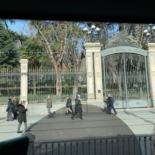The next day after coffee, we spent all day touring the city on the hop-on hop-off bus. It meandered through several areas of Madrid. This tour, unlike others, was not the best. Madrid is just too big! We hopped off at Almudena Cathedral, which had beautiful mosaics and colorful art. We then walked by the Royal Palace… viewed through the gate. Next stop was Chocolateria San Gines, which is very famous for their “hot chocolate”, but really it is dipping chocolate for fried donut sticks. It was very thick and the three of us should have, and could have, shared just one. It was a little disappointing, and overly sweet, to be honest. But it was good to see a lot of Madrid in just one day. My mom was thrilled to see the church and taste the chocolate, as she had read about both in a tour book. We ended the day by eating at a very nice Italian restaurant near the museum we had visited the day before. Mom started to fall in love with “virgin” mojitos. No kidding! My mom doesn’t drink alcohol, but loved the idea of having a fun, mint cocktail.
