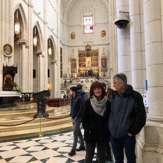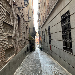 We all agreed the highlight of our Madrid area visit was our daytrip to Toledo. Toledo is an ancient, historic city about an hour's train ride from the station near our AirBNB. The city of Toledo has been inhabited for thousands of years, and was controlled by the Spanish Moors and others over time. It was at one point the capital of Spain. At some point, the city fell into disrepair before getting re-inhabited and rehabilitated. It was a beautiful city behind a walled fortress, on a hilltop looking over much of the area. It had beautiful, cobblestone streets, ancient buildings, and an unbelievably ornate church, the Toledo Cathedral.